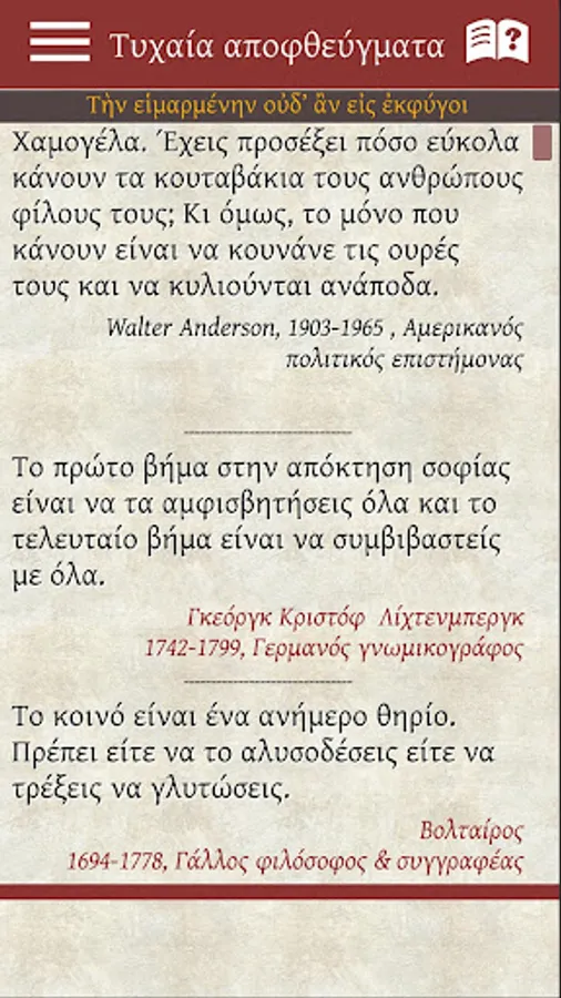 Find quotes, sayings, opinions and proverbs, by various authors from around the world, translated into Greek.