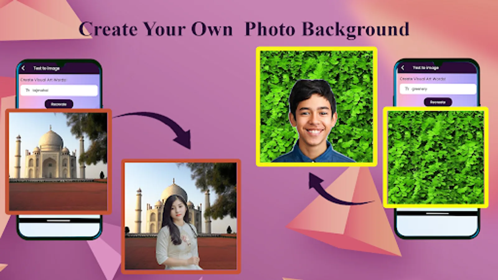 ✪ AI Background Replacer: First create your own image background and then set it as a new background on your photo to give it a new look.