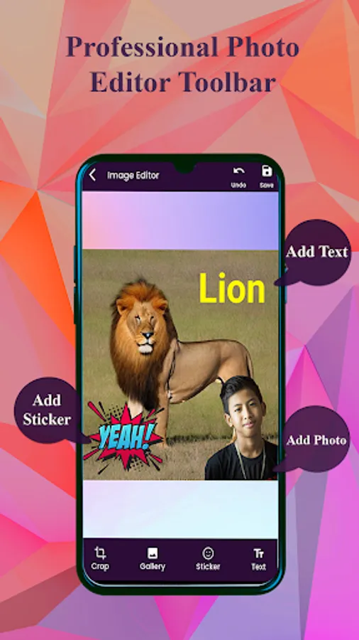 ✪ Photo Editor Toolbar: Edit, Crop, rotate, add pic, photo frames, text & stickers to your artwork