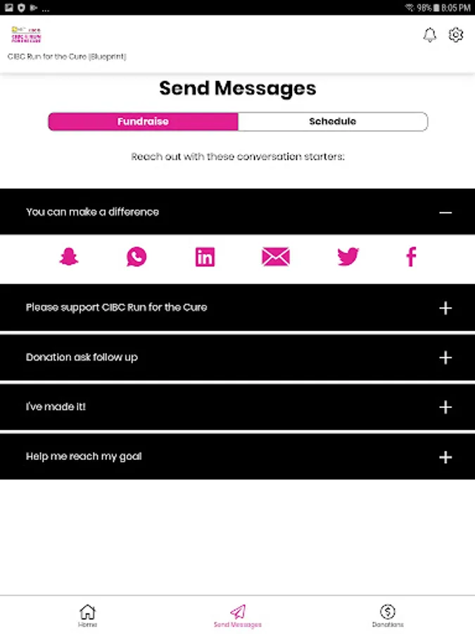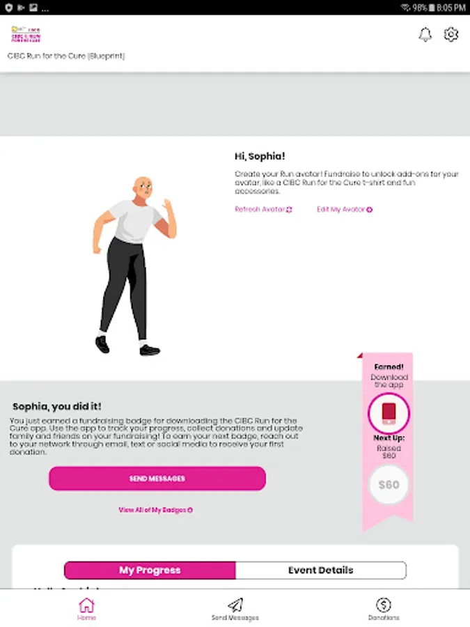 Do your fundraising on the go with the CIBC Run for the Cure application. Update your page, send emails, and check your progress – all from the palm of your hand. The CIBC Run for the Cure application is a great tool to track your fundraising progress, track your physical activity using Google Fit, and to keep current on all your event news!
