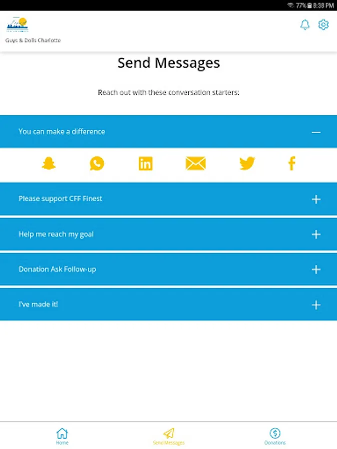 Fundraise on the go with the CF Foundation's Finest app! We’ve made it easy to update your fundraising page, send emails, and check your fundraising progress – all from the palm of your hand. The CF Foundation Finest application is a great tool to keep current on all the Finest news.