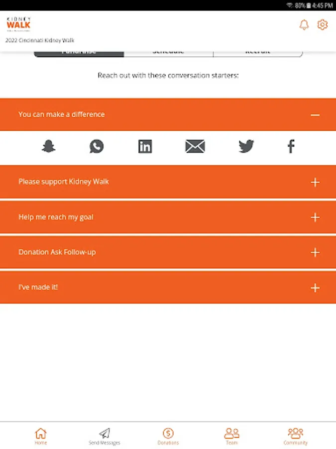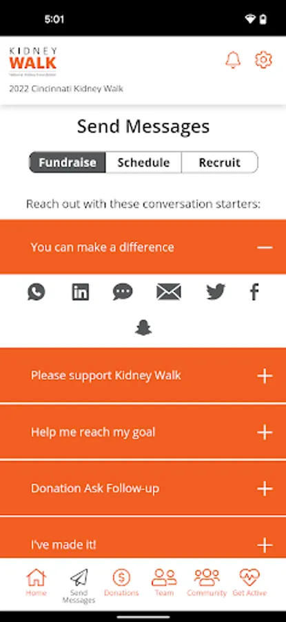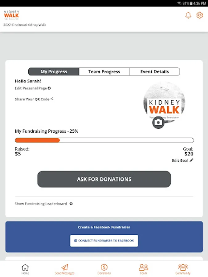 Fundraise on the go with the Kidney Walk smartphone application. Update your page, send emails, and check your progress – all from the palm of your hand. The Kidney Walk application is a great tool to track your fundraising progress, and to keep current on all National Kidney Foundation news!