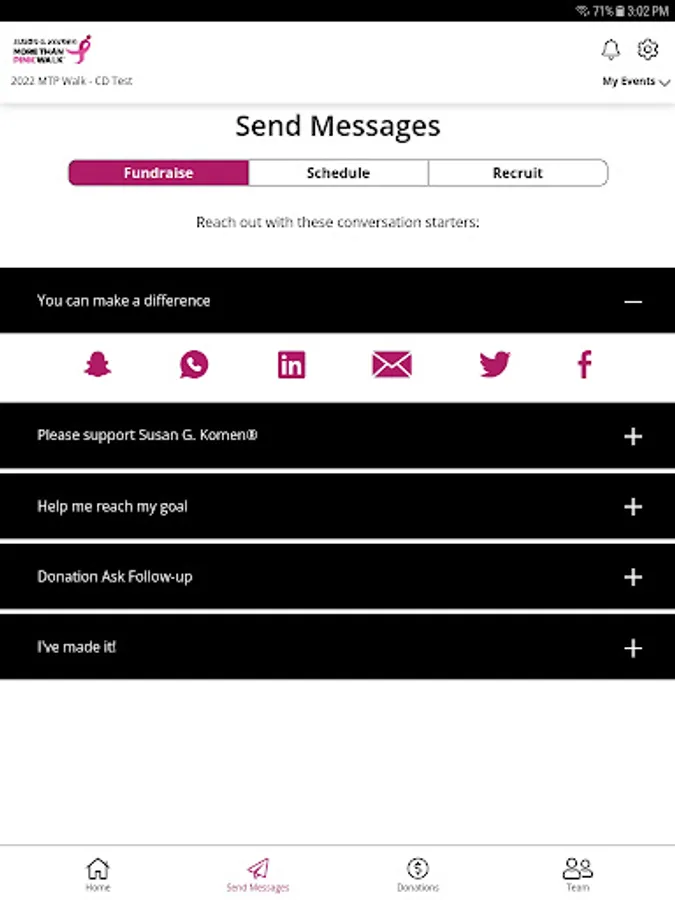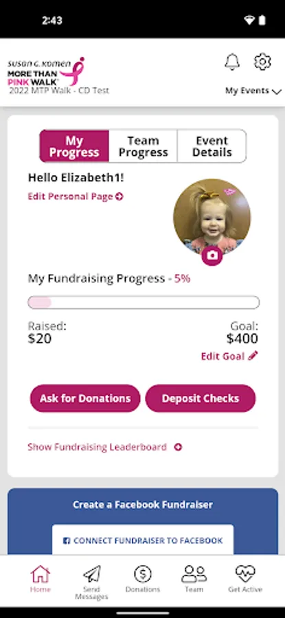 Do your fundraising on the go with your Susan G. Komen MORE THAN PINK Walk® application. Update your personal fundraising page, send emails, check your progress, and connect to Google Fit to track your physical activity – all from the palm of your hand. Susan G. Komen MORE THAN PINK Walk® application is a great tool to track your fundraising progress, and to keep current on all Race news!