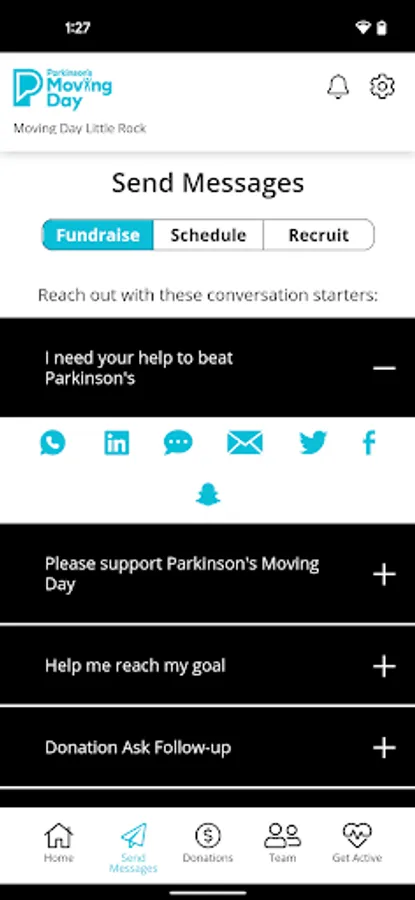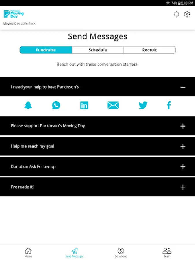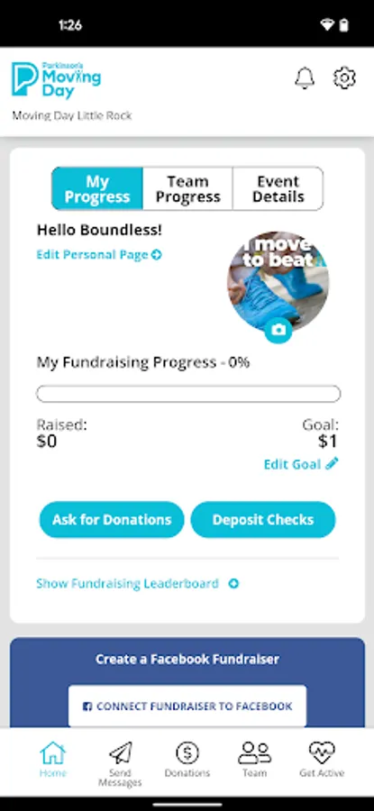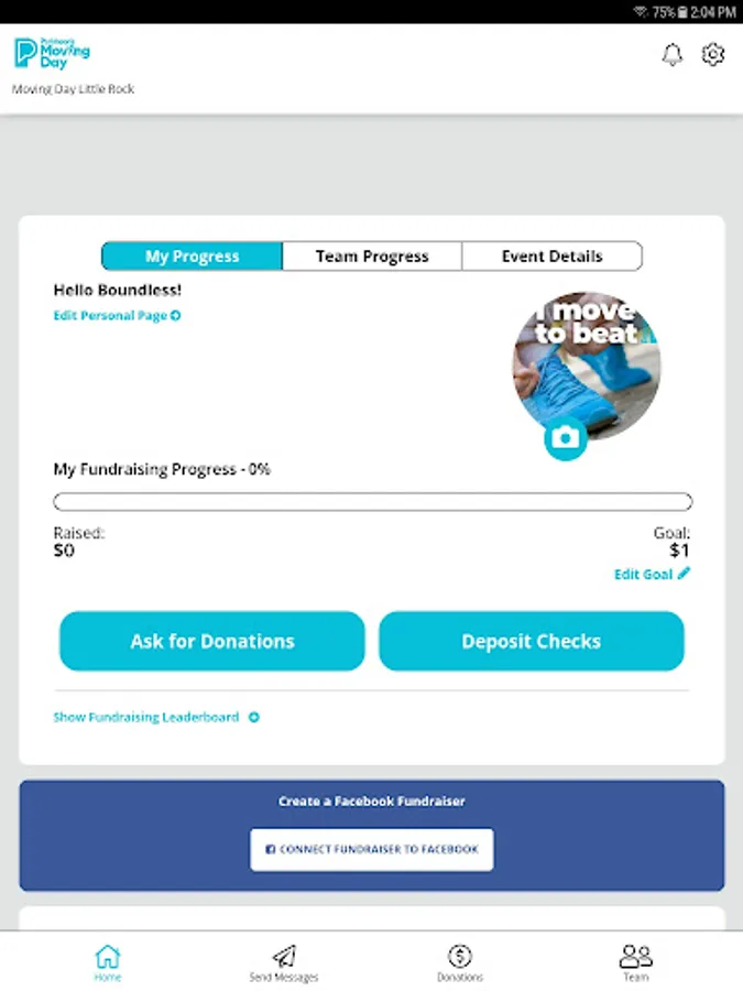 Do your fundraising on the go with your Parkinson's Moving Day application. Update your page, send emails, check your progress, and connect to Google Fit to track your physical activity – all from the palm of your hand. The Parkinson's Moving Day application is a great tool to track your fundraising progress, and to keep current on all Parkinson's Moving Day news!