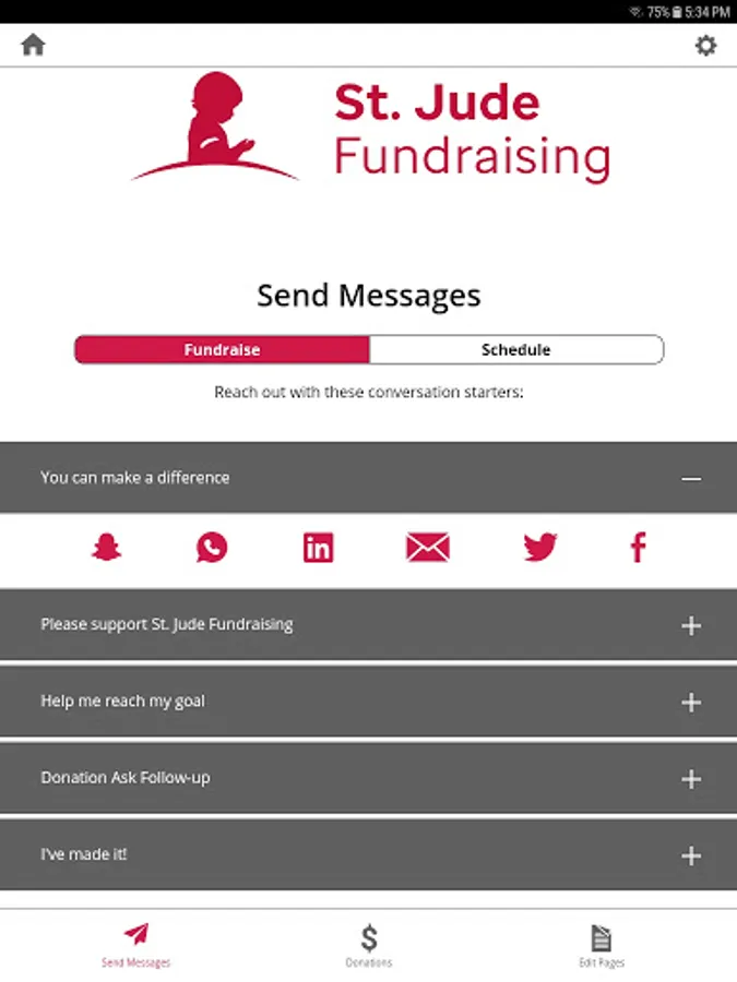 Do your fundraising on the go with your St. Jude Fundraiser application. Update your page, send emails, and check your progress – all from the palm of your hand. Your St. Jude Fundraiser application is a great tool to track your fundraising progress, and to keep current on all St. Jude news!
