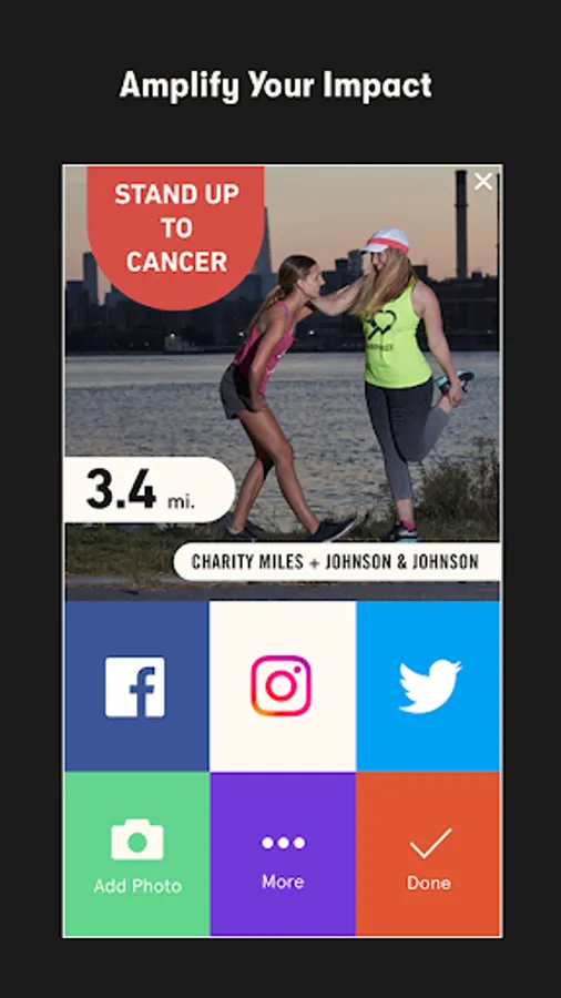 1. Charity Miles works like a pedometer, run-tracker, walking timer, cycling meter or running stopwatch. Just start and stop your workout to track your distance.