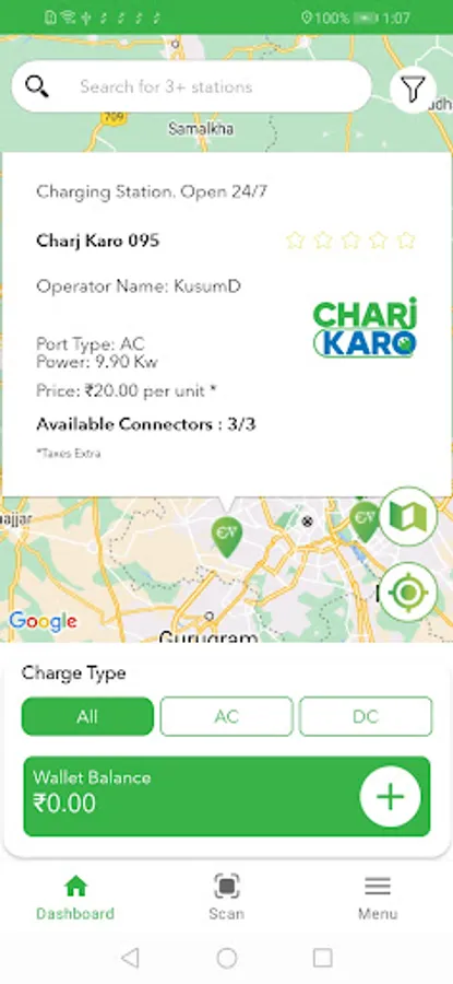 CharjKaro is a cutting-edge mobile application designed to facilitate the seamless charging of electric vehicles (EVs) by providing access to a comprehensive network of charging stations in your vicinity. Through this user-friendly app, you can effortlessly locate and avail yourself of EV charging options. It empowers you to conveniently find the nearest charging stations based on your preferences, such as charger type, distance and station availability.