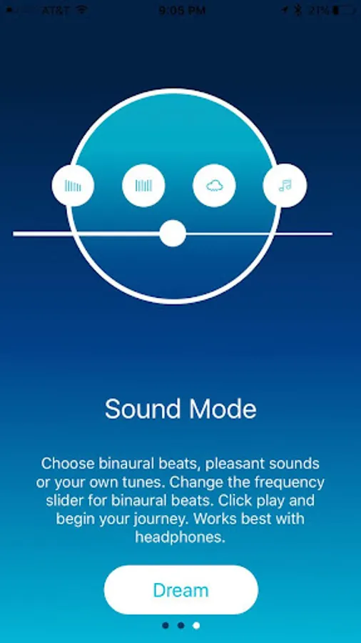 Combined with the power of binaural beats and trance-like sound choices, it provides the user with the choice to stimulate their mind for concentration, meditate for relaxation or enter a dream-like state for creativity and visions.