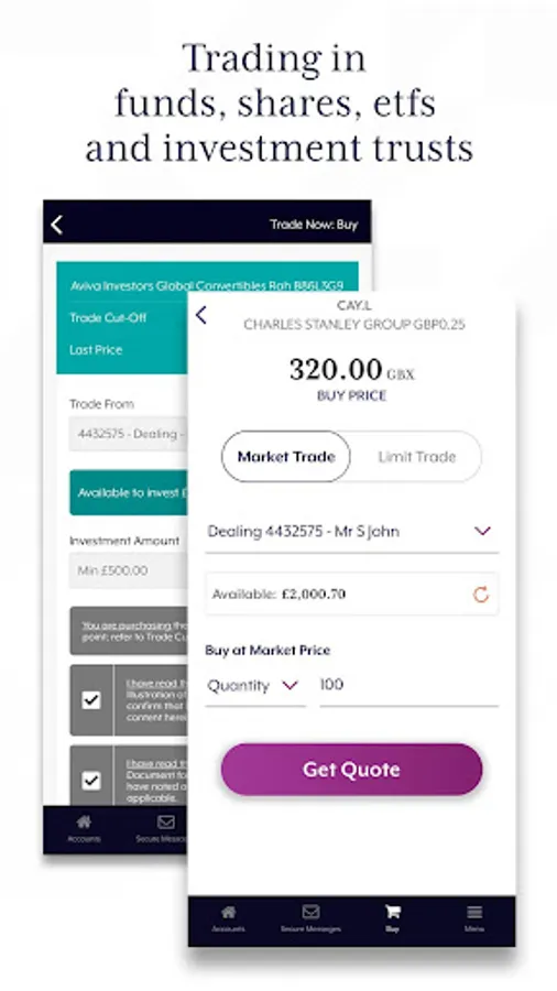 Charles Stanley seeks to help you create a more secure financial future. With our Direct Investment service, you can invest in your future using our first-class platform and App to implement your investment decisions, allowing you to:
