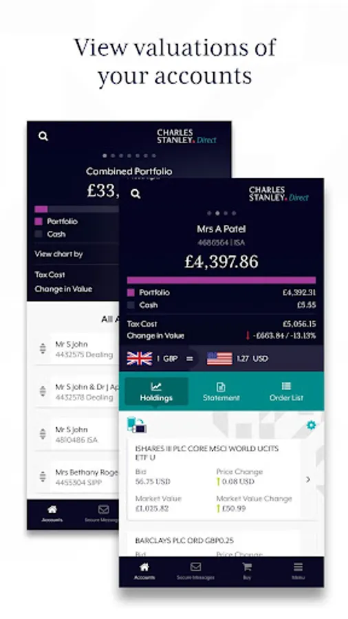 - View up to date valuations of all your accounts