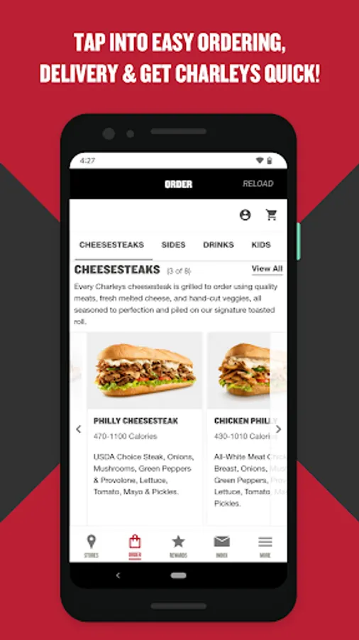 Charleys fans – take your Cheesesteak love to the next level with Charleys Rewards. Get the best deals on your favorite menu items, earn rewards and points every time you order, and be the first to know about exclusive offers and new menu items. PLUS, place orders on-the-go for delivery or pickup right in the app!