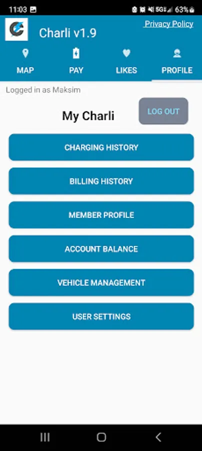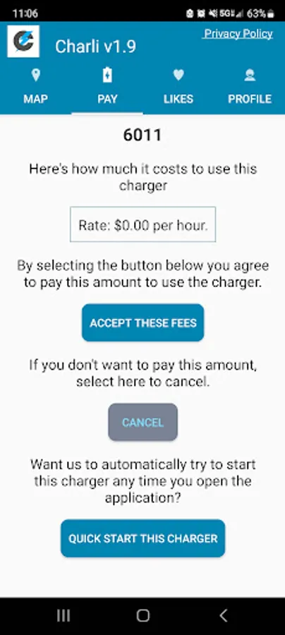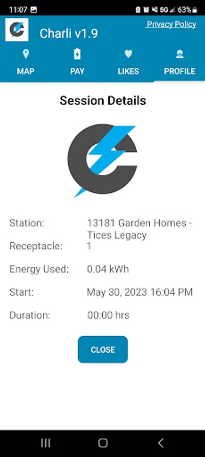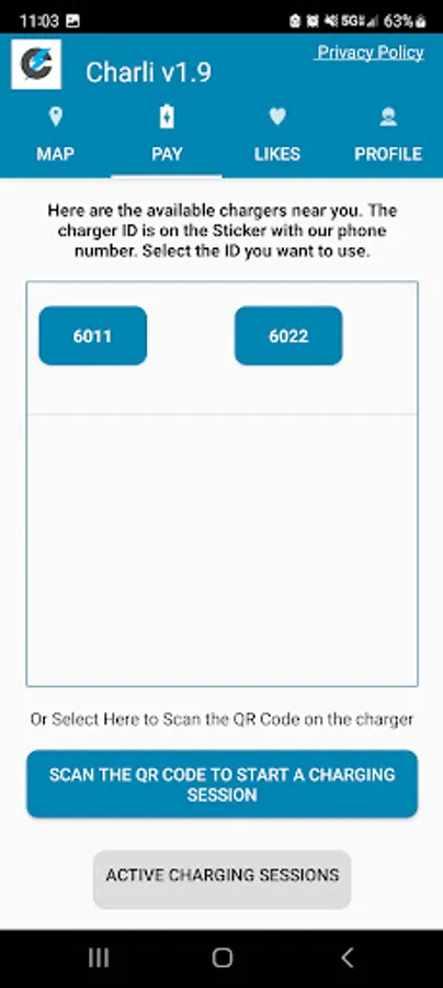 Charli Android application will allow users of Charli Electric Vehicle Charging Stations (EVCS) the ability to obtain real-time status and directions to nearby or favorite EVCS. This application also allows registered Charli user to authorize a charging session via Bluetooth Low Emissions (BLE) with the an EVCS emitting BLE. This application also allows a registered Charli user to authorize a charging session using the QR Code on the EVCS. This application allows a registered Charli user to monitor and manage their user account settings.