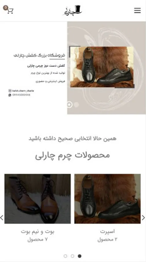 چرم چارلی در فروشگاه خود امکاناتی را برای خریداران مهیا کرده است که در کمترین زمان ممکن به دسته بندی تمامی کفشهای چارلی مراجعه و محصول مورد نظر خود را انتخاب کند. تصاویر و رنگبندی همهی محصولات به تفکیک در صفحه ی هر محصول قرار داده است تا مشتریان ما به خیال آسوده کالا مورد نظر را خریداری کنند.