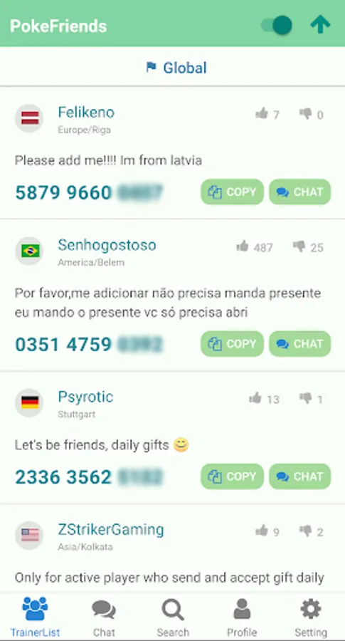 Poke Friends is a simple tool to help trainers share their trainer code and chat with each other. Meet global friends here. There are a lot of trainers waiting to be your friends!! 😊