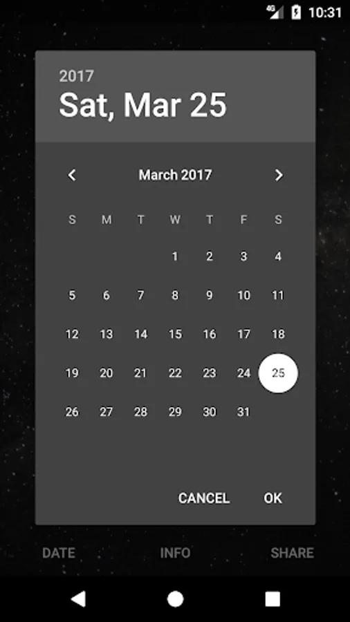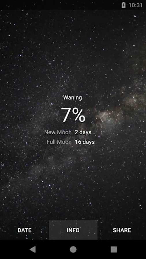 * Share what the moon looks like on any date to Facebook, Twitter, Tumblr, etc.