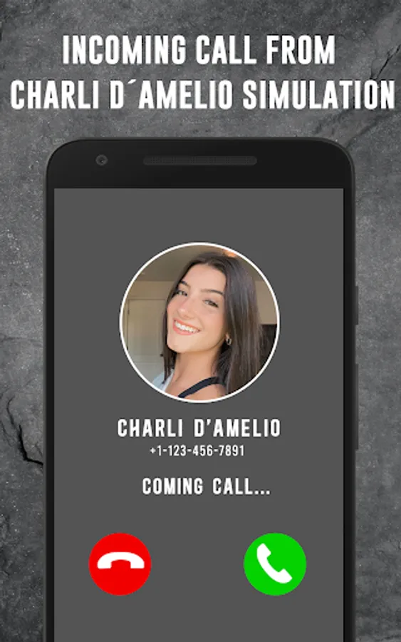 are you Charli D'Amelio lover and fan, or you have one of your family or friends fan of her, this app for you!. Charli D'Amelio Fake video call and call simulator allows you to prank your friends and family by receiving a video call or audio call from Charli D'Amelio that looks very realistic.