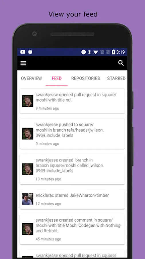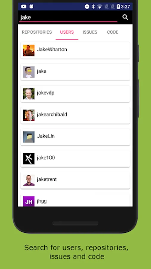 • Visit others' profiles and view their repositories, followers and starred repos