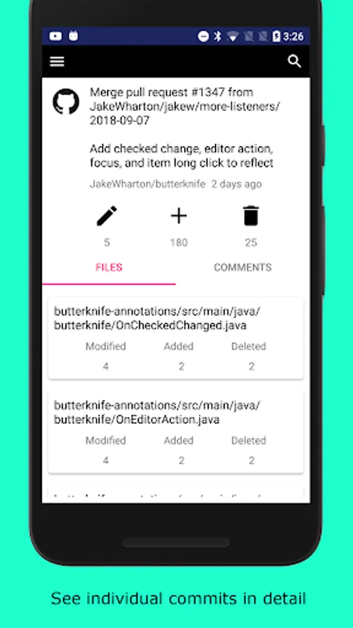 • See the list of modified files and the corresponding patch for commits and pull requests