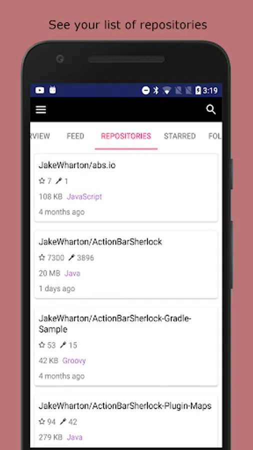 • View your profile, repositories, starred repositories, followers and following