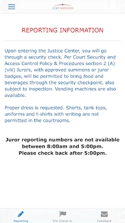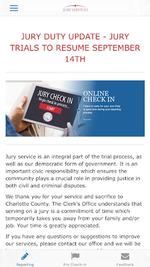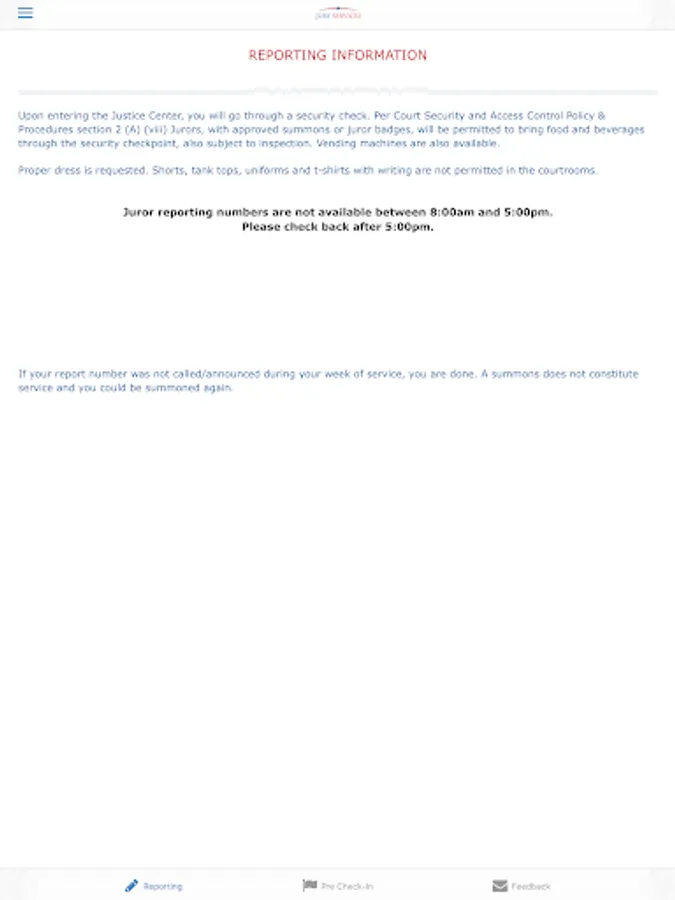 Online Check-In – We offer early online check-in and registration to save you time when arriving for Jury.