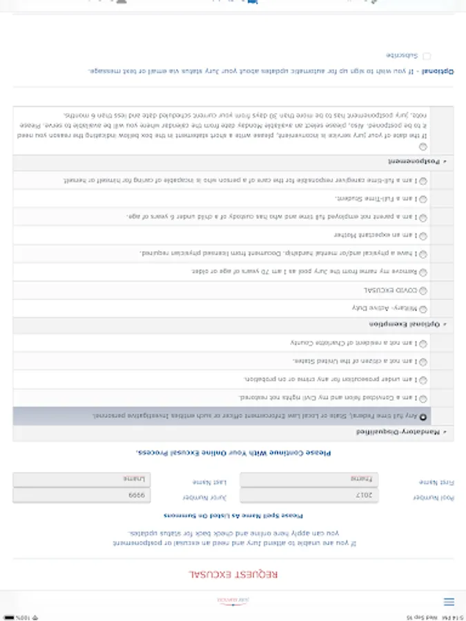 Online Excusals – We offer electronic excusal requests for postponements of your Jury Service.