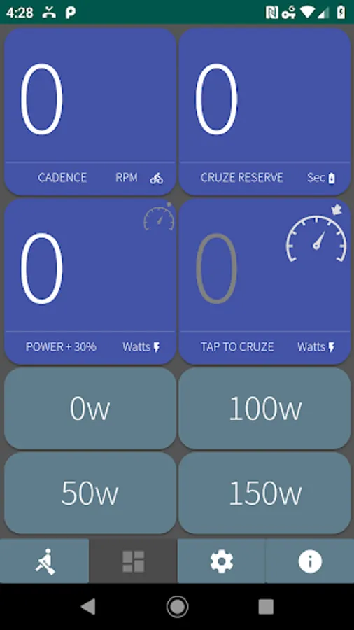 To help, RowedBiker has a Cruze mode that temporarily locks your power to a certain level, similar to the cruise control in an auto. Use it whenever you need to stop rowing for a moment. You also have the option to "bank" power before you need it using the Cruze Reserve to maintain workout integrity.