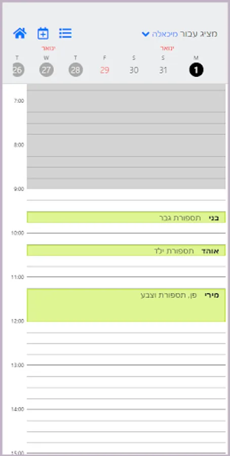 צפייה ביומן יומי של המכון, עד חצי שנה קדימה ובו כל הטיפולים של כל עובד