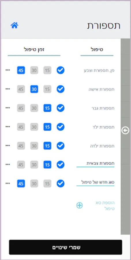 את.ה יכולים לשנות את משך זמן הטיפול עבור כל סוג טיפול
