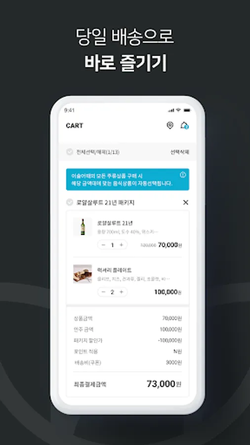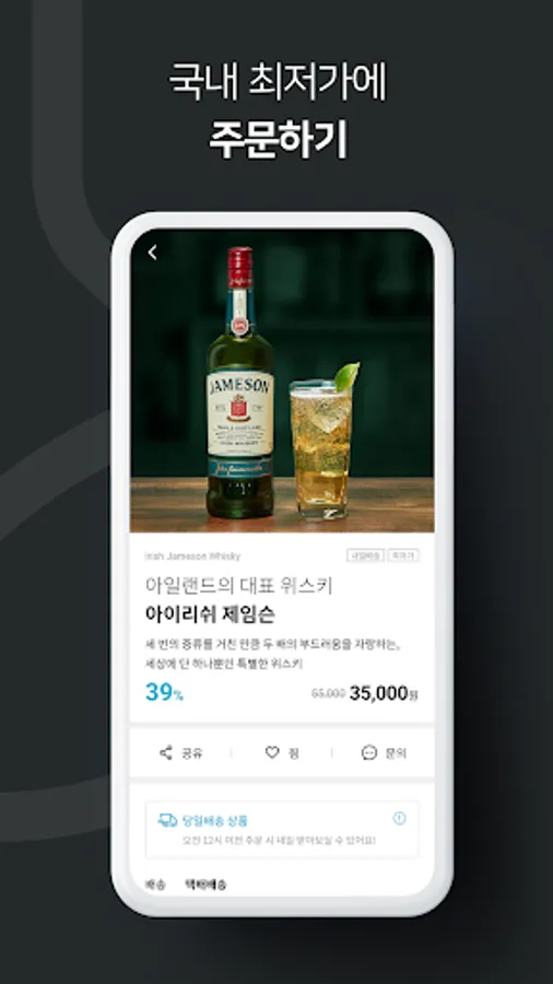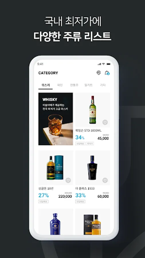 Whiskey, wine, tequila, rum, gin, vodka, traditional liquor, etc. 2000 kinds of various alcoholic beverages at home at the lowest price in the country, it is a convenient intermediary purchase application that allows you to order and shop.