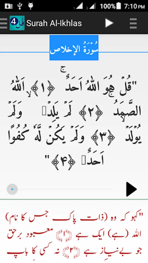 Another Islamic app offered by THESIZZLINGAPPS,4 Qul of Quran is an Islamic Application which contains Four Holy Surahs of Al-Quran Majeed with mp3 audio,