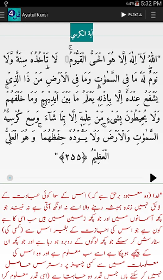 combination Ayatul kursi with urdu translation,ayatul kursi mp3 and surah al fatiha with urdu translation.