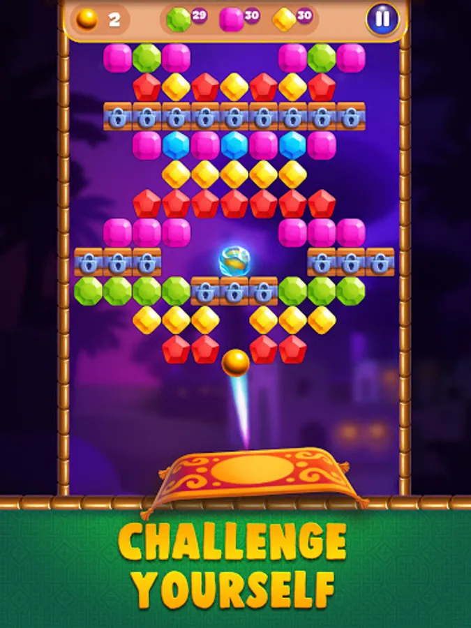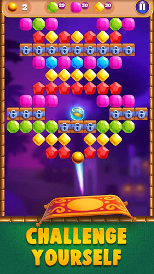 Remember, you must break all bricks and gems from goals to pass the levels with your helper genie!