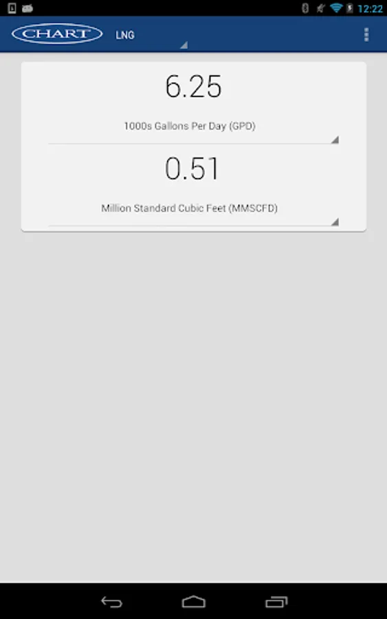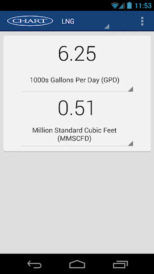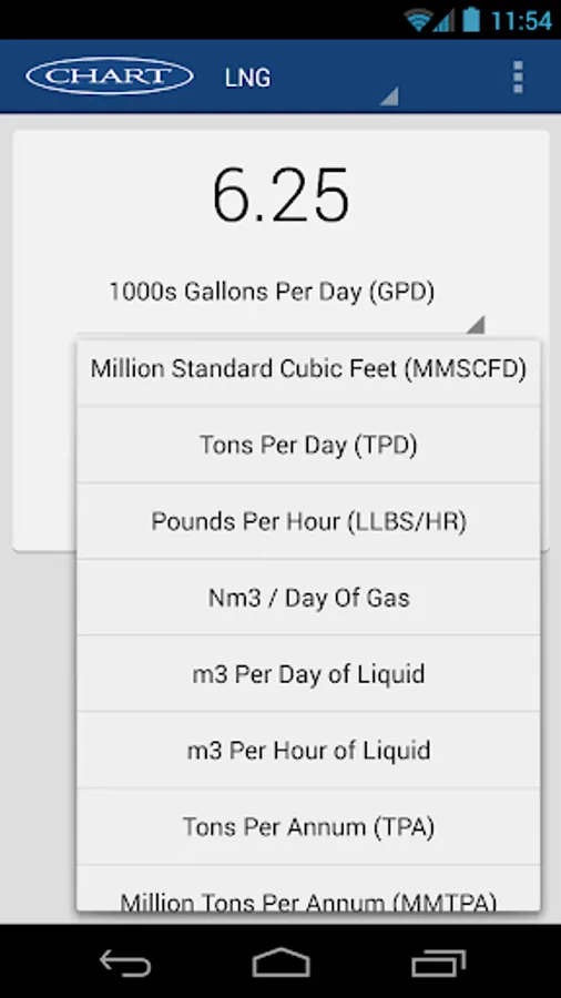 This APP is to provide a quick conversion tool between the most frequently used capacity measurements in the burgeoning LNG liquefaction and natural gas processing industries. It is a useful tool for engineers of all disciplines; process, mechanical, project, as well as purchasing and sales professionals and other stakeholders in the aforementioned industries. With each LNG calculation the app offers the user the choice to find out more about the optimum liquefaction plant solution recommended by Chart. The app also includes conversions for the most frequently used measurements of Energy, Temperature, Pressure and Volume so that users have all the conversion tools they require in one place.