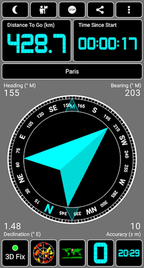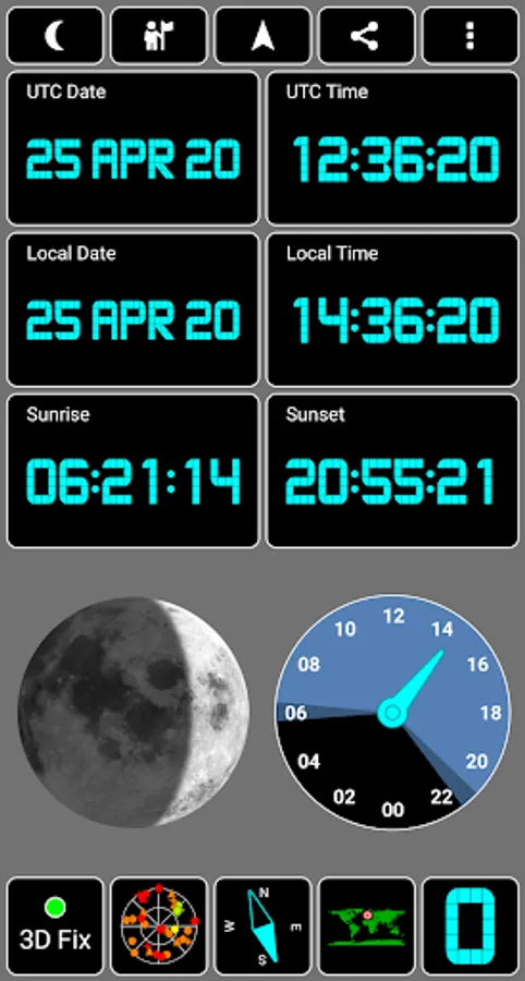 With this app, you can check the GPS reception in your area and update AGPS data for faster fix times, whilst being able to view other GPS and sensor data. The app acts as a one-stop place for viewing: your altitude, accurate UTC plus local time, your compass heading, the moon phase and daylight hours. It supports GPS, GLONASS, GALILEO, SBAS, BEIDOU and QZSS satellites. The app has various different colour schemes which can be changed according to your tastes, including a night mode. The colour schemes can also be used to match other instrumentation alongside the app.