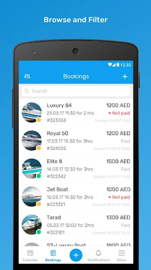 * Browse And Filter Your Fleet - Go through every boat in your fleet and see all the bookings assigned under each and every one of them.