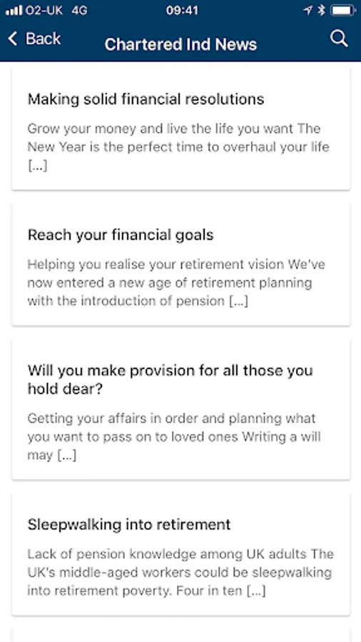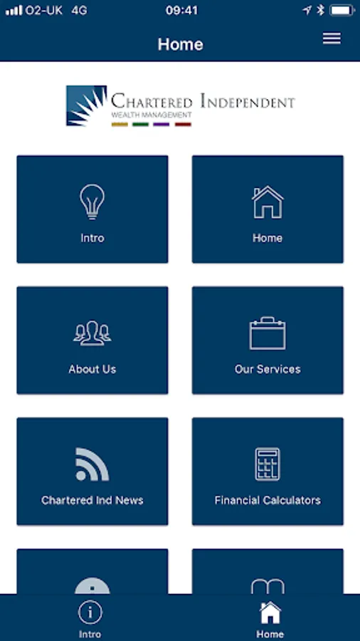 The Chartered Independent app is a financial adviser application built for Chartered Independent Wealth Management. The app allows clients to upload supporting images/screen shots of documents through the camera function. The app features calculators, magazines, tax tables and also a client login function. The Chartered Independent app also comes with push-notifications enabled to keep users updated with updates.