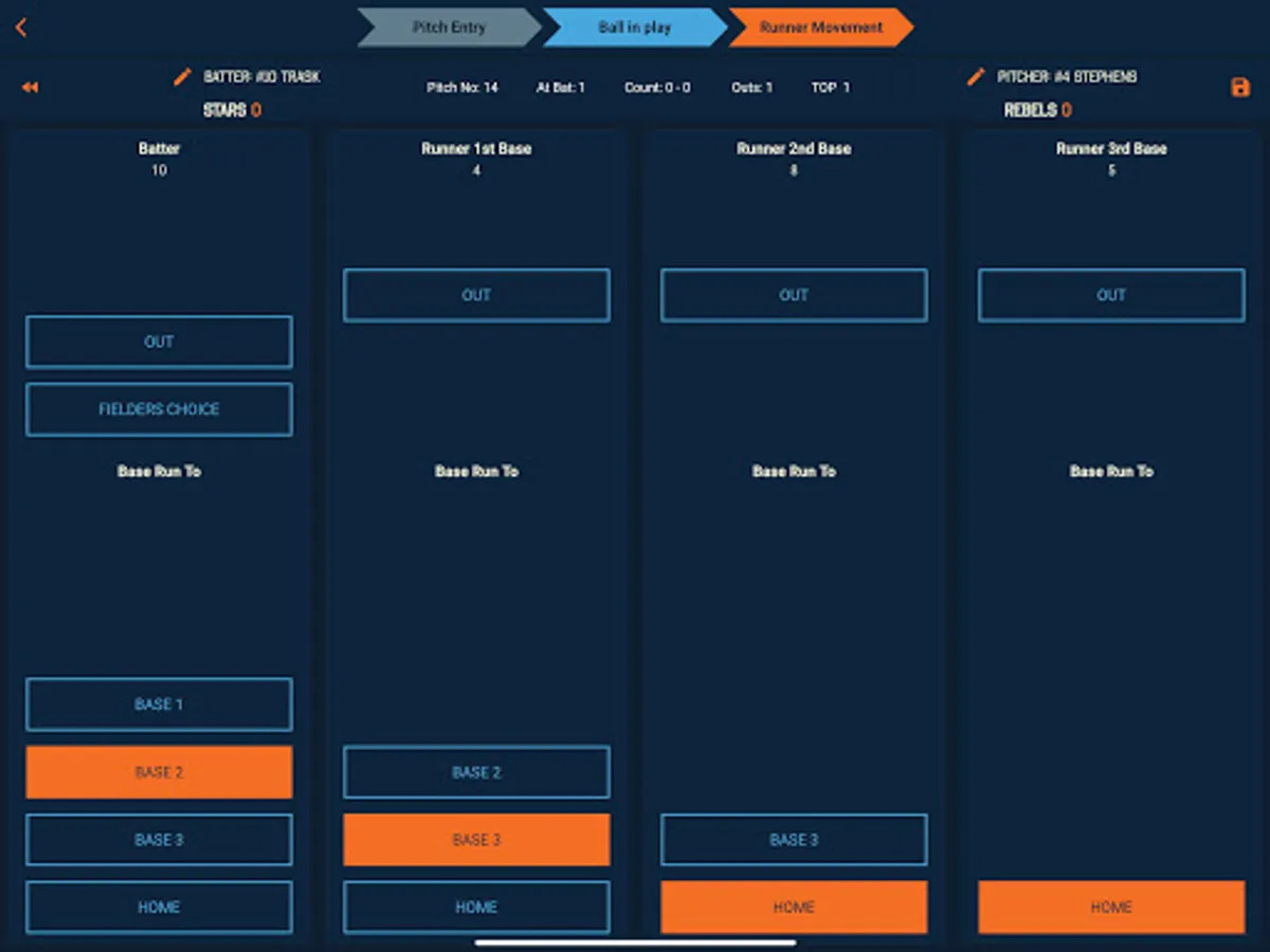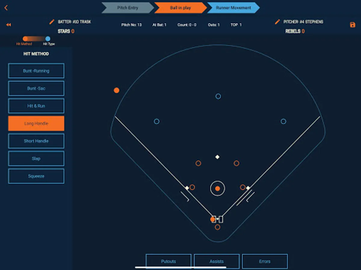 Ball in play location can be recorded to generate a spray chart in reporting