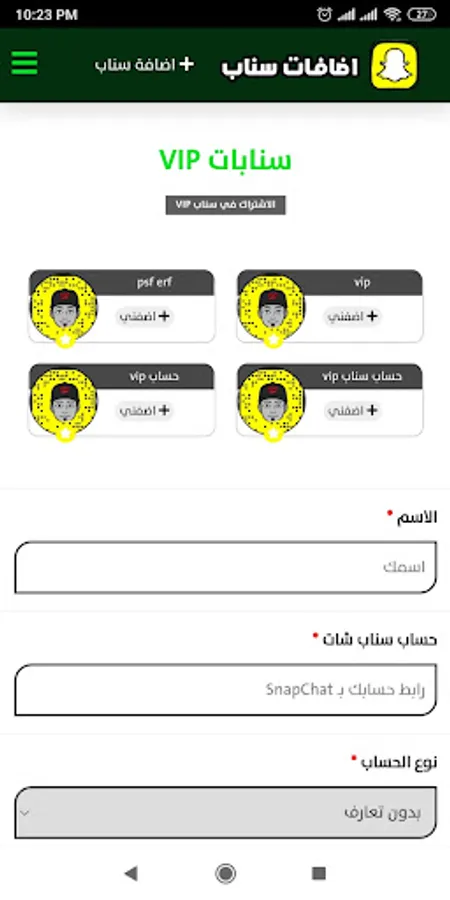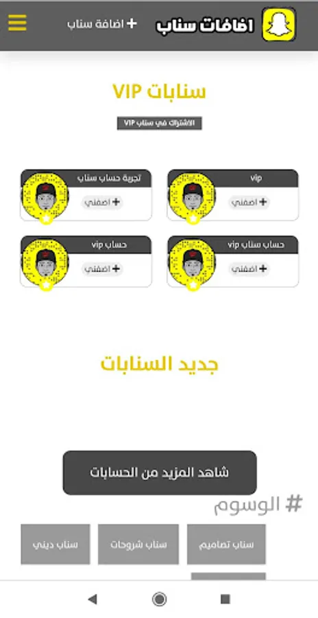 When you open the main screen of the application, you find that the first thing that appears to you is the accounts of the constant subscribers who pay to subscribe for the period they subscribe to, and this is done so that the number of additions increases as much as possible.