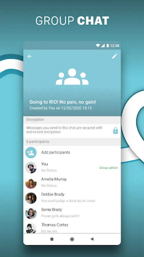 SECURE: Our mission is to send your messages concealing from third parties. Chat-in encrypts messages with End- to- End -Encryption and do not share them.
