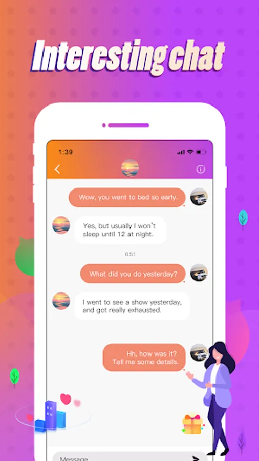 You can meet many friends here. We have powerful IM function. You can use video, sticker, voice, text, pictures and other functions to express yourself and better communicate with each other.