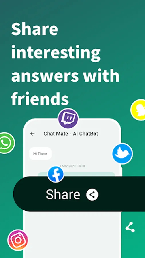 Interact with cutting-edge AI bots through the ChatMate APP. Never worry about not being able to solve the problem again. Whether you want to get advice, ask for help, or plan for the future, Chat Mate has you covered.