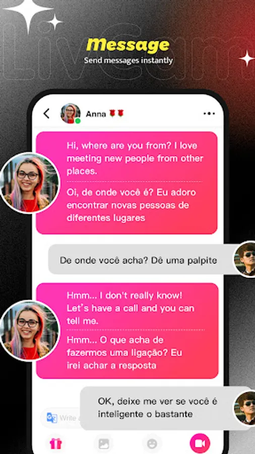 No need to worry about chatting with new friends in other languages! Our instant message translation technology makes it easy for you to chat freely with friends from different nationalities and countries with diverse cultures.