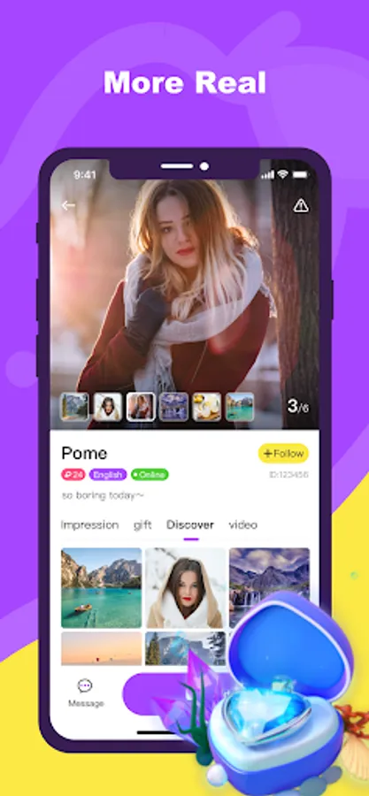 In Pome, you can interact and entertain with other people through dynamic, pictures, text chat, etc.