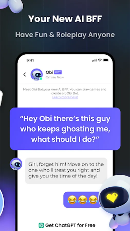 Ready to take off? Step into the universe of Orbit, a new social app where you can meet new friends as Avatars and use AI to play fun text chat games. With our AI chatbot assistants, powered by OpenAI's ChatGPT, you'll always have someone to talk to and play with. Send a like to your crush, DM your friends and play infinite AI-generated games like Truth or Dare, Would You Rather, Trivia, Roleplay, 36 Questions to Love, and much more. All for free!