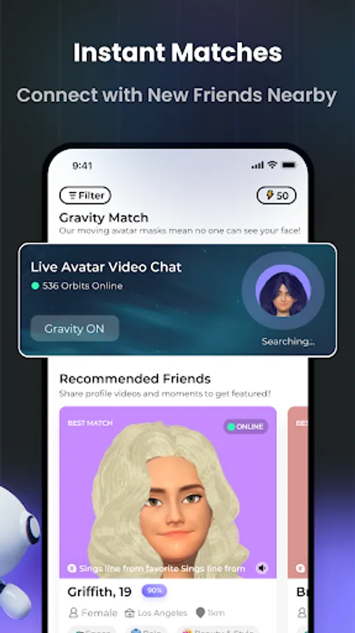 Our app creates a personalized avatar that represents you in a virtual world, allowing you to meet and interact with other users & chatbots in a fun and engaging way. Discover new friendships, engage in exciting games, and express yourself. Whether you're a social butterfly or a newbie to the scene, Orbit is your go-to destination for all things fun, friendly, and futuristic.