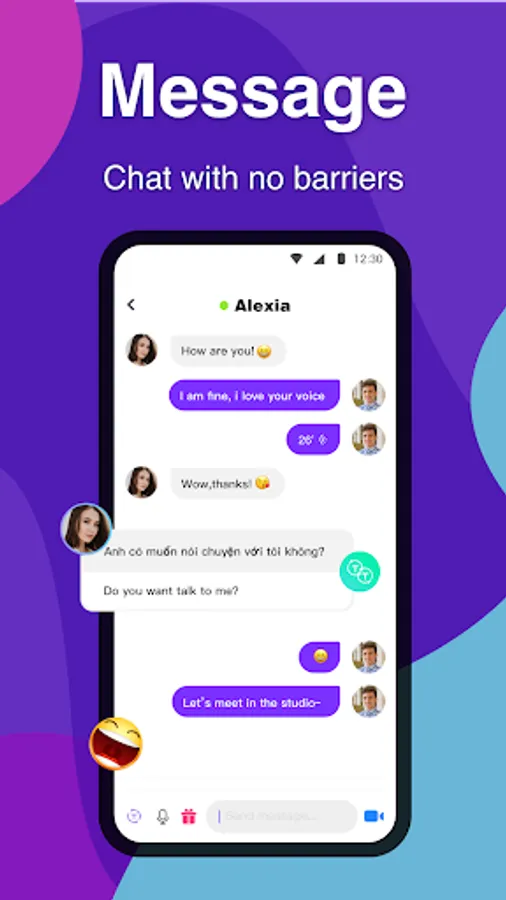 In Chacha, you will never miss a chance to chat with them because of the language barrier anymore. Click the translation button to break the language barrier in both video or message chat easily.