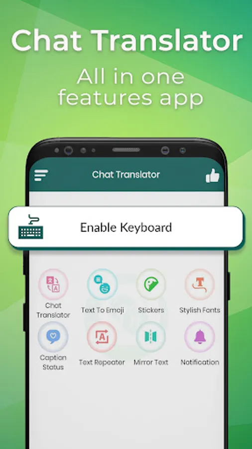 Chat Translator with keyboard can translate your text in all languages with All Language Translator. Chat translator keyboard comes with lots of features such as Voice Translator, Text Translator, Voice Typing, Mirror Text, and Emoji Text. This chat translator keyboard app helps users to translate text into different languages and also write text with Voice Typing Keyboard. This Language Translator app with keyboard helps people to chat with people who speak foreign languages. Translator Keyboard allows you to convert your text to another language during typing. Voice Typing also works as Speech to Text feature in which your voice or speech is converted into text.