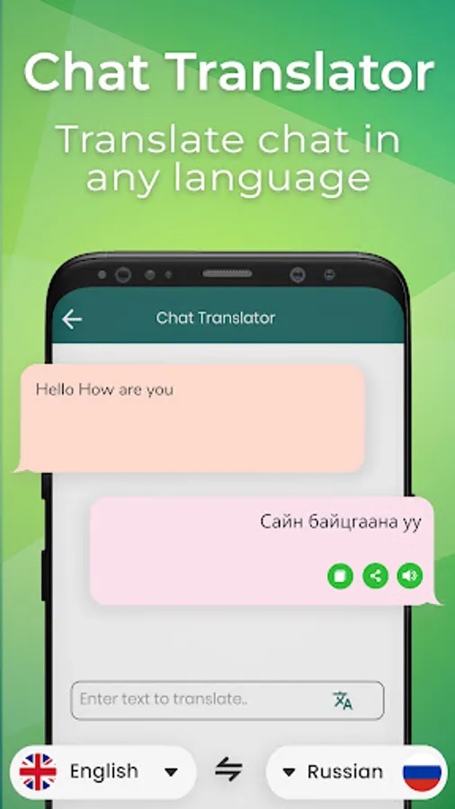 Translate Chat with a voice translator app in all languages is very easy. You can also translate received messages with the text translator feature. Copy the received message text, paste it into the text translator section and click on the translator button then your text is converted into your desired language. Voice to text feature converts your voice into text and you can easily convert that text into another language. You can also call this translation process a smart translation.