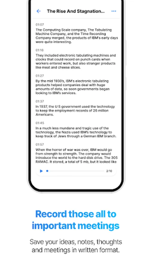 Elevate your transcription experience with Writtan - the leading transcription app designed to revolutionize your productivity. Say goodbye to the hassle of juggling note-taking and active listening during meetings and interviews. Our cutting-edge AI-driven transcription engine ensures real-time, ultra-accurate transcriptions that automatically discern speakers, apply punctuation, and capitalize words, freeing you to fully engage in the discussion.