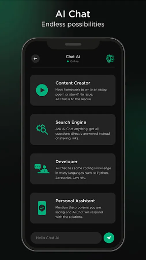 * This app(AI Chat) is not officially affiliated to any third-party, any other app or company in any way, nor does it represent to do so. This app(AI Chat) only provides a mobile interface to interact with AI Chatbot.